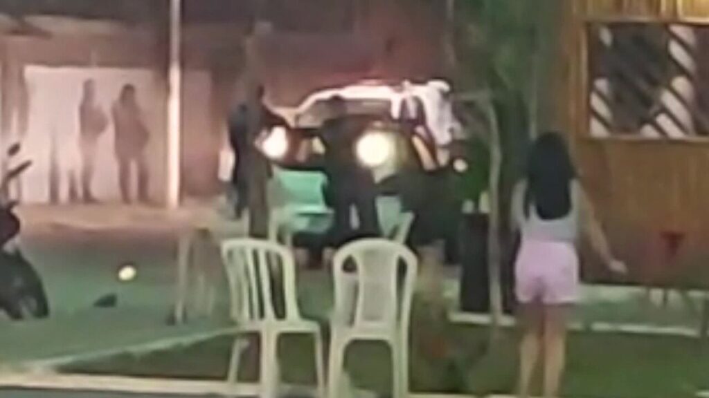 Um vídeo feito por comerciantes e participantes da festa, que acontecia no bairro Santo Antônio, mostram a confusão que terminou com a jovem atingida no joelho por um tiro disparado por um policial militar, por volta da meia-noite.