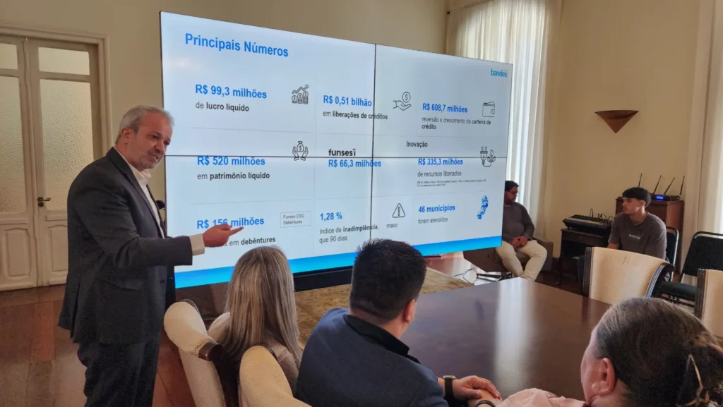 OBanco de Desenvolvimento do Espírito Santo (Bandes)alcançou resultado recorde em 2024. Foram R$ 511 milhões de reais concedidos no ano passado, sendo R$ 355 milhões em créditos diretos a empresas e R$ 156 milhões por meio doFunses Debêntures ESG, um programa que financia projetos de empresas por meio de debêntures (títulos de dívida emitidos por empresas para captar recursos no mercado financeiro) com objetivo de estimular asustentabilidadee a inovação em áreas como educação,indústria, saúde e energia.