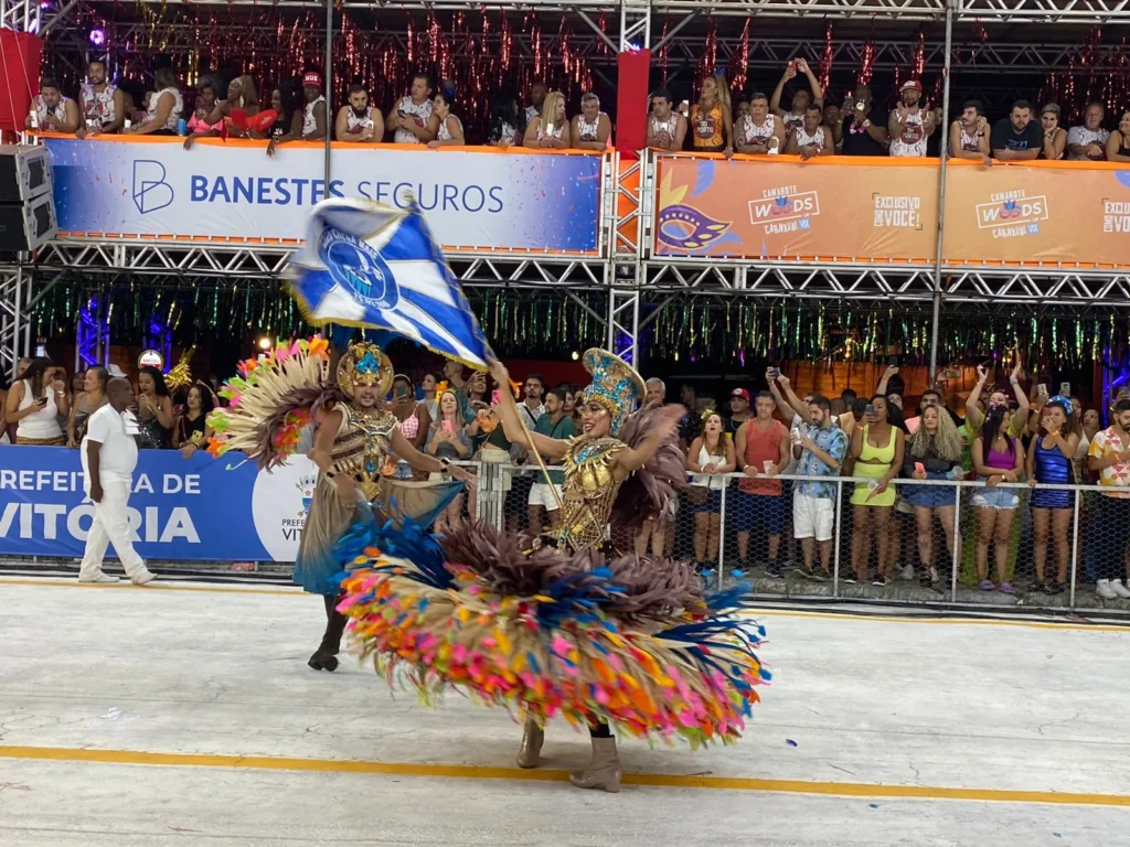 A escola de samba do Morro do Quadro, em Vitória, relembrou as origens da festa com o Carnaval de Veneza, os blocos de rua e as origens do carnaval capixaba como o Bloco do Peru, de Castelo e os bois pintadinhos de Muqui.
