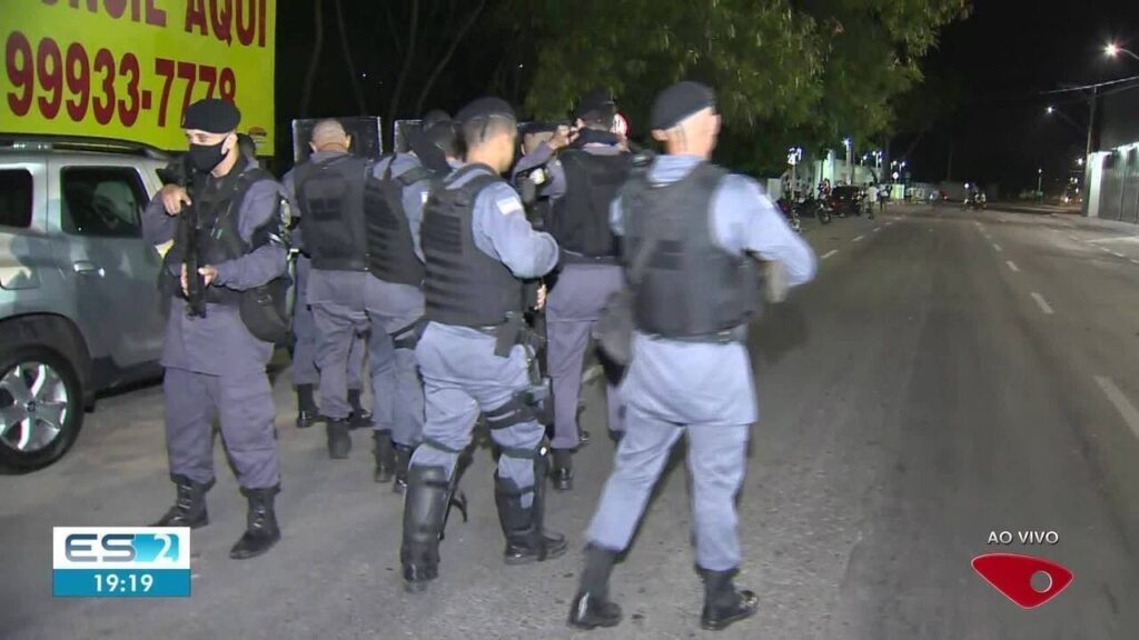 Um ônibus foi depredado. Cerca de 20 motociclistas protestaram e fecharam uma das vias, que dá acesso ao município de Guarapari.