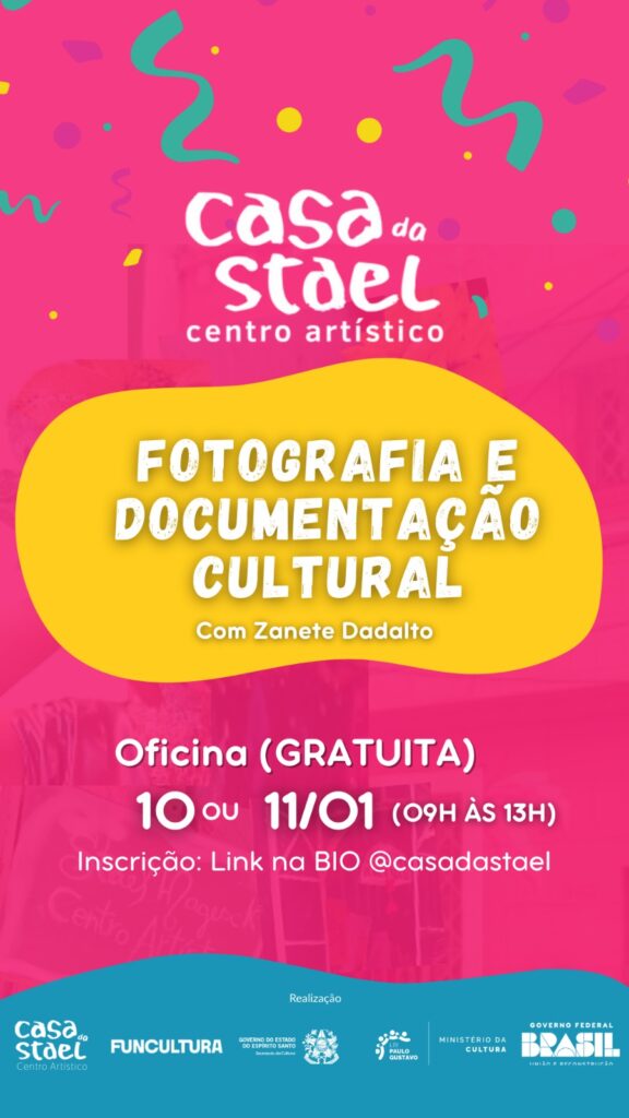 Neste fim de semana, sexta (10) e sábado (11 de janeiro), a Casa da Stael, no Centro Histórico de Vitória, realiza a oficina gratuita “Fotografia e Documentação Cultural”, voltada ao registro do Carnaval de rua do Centro da capital.