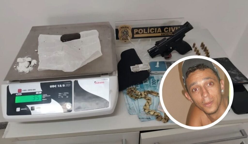 Com o homem, foram apreendidos uma pistola calibre .380 municiada, entorpecentes, dinheiro em espécie e documentos. Em outro endereço ligado à investigação, a polícia localizou drogas, balança de precisão, materiais para embalo e aparelhos celulares.