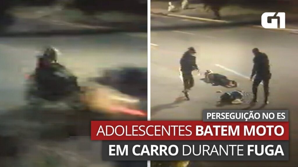 Vídeo mostra adolescentes em moto roubada batendo em carro durante perseguição no ES